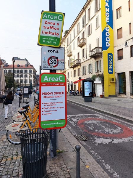Niet alle auto’s mogen deze milieuzone inrijden: je bekijkt op de website van de Gemeente Milaan, onder de kop Autoveicoli per trasporto persone – Divieti già in vigore met welke emissieklasse je de Area C niet in mag rijden. Sinds oktober 2025 zijn de regels weer verscherpt en mogen ook personenauto’s met benzine euro 3 niet meer de Area C in.